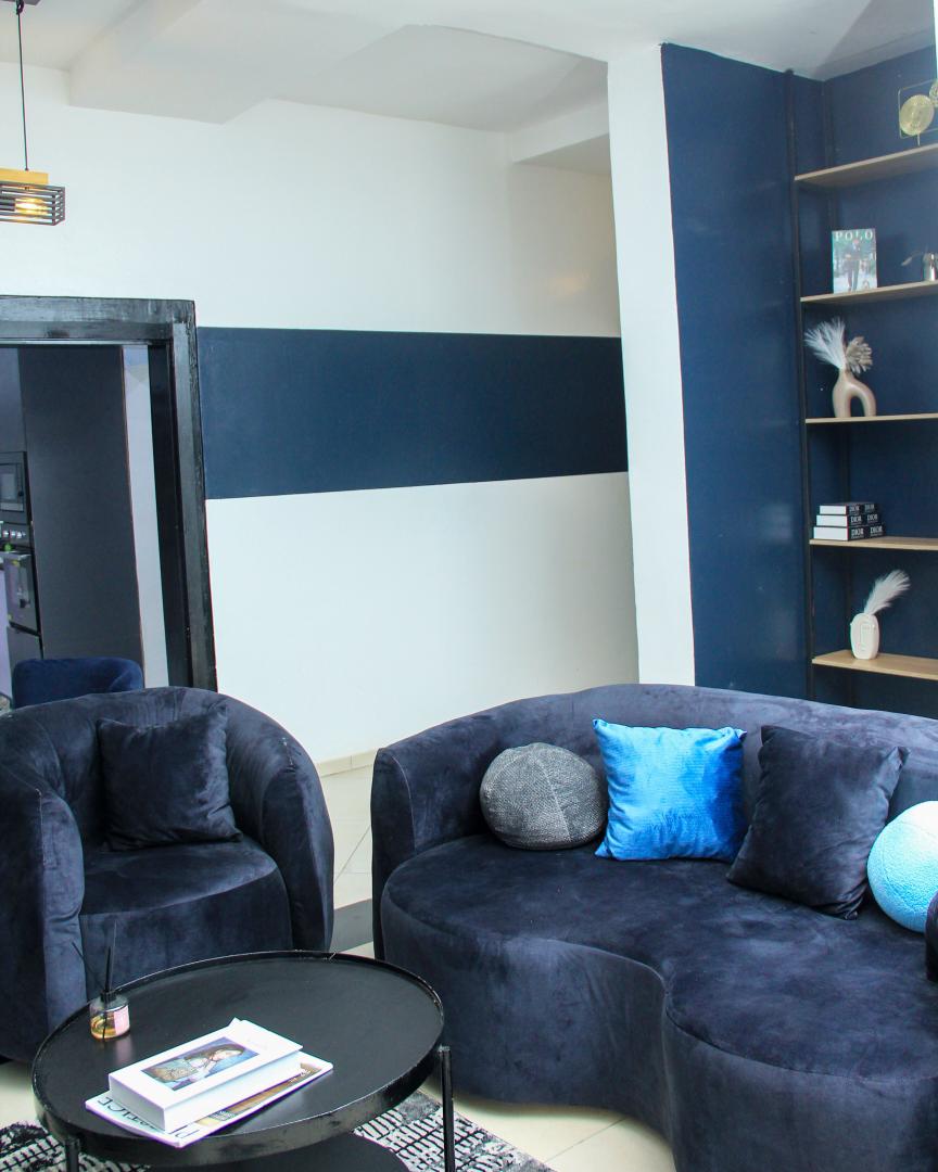 This two-bedroom haven welcomes you to a living room with plush blue velvet couches, catching the eye and easing the body; a sleek and functional kitchen ready for midnight cravings and black-and-cream beds dressed in crisp white linens for guiltless sleep-ins. Amenities include free high-speed internet, suite-wide air conditioning and many more. An experience worth a night, or many nights.